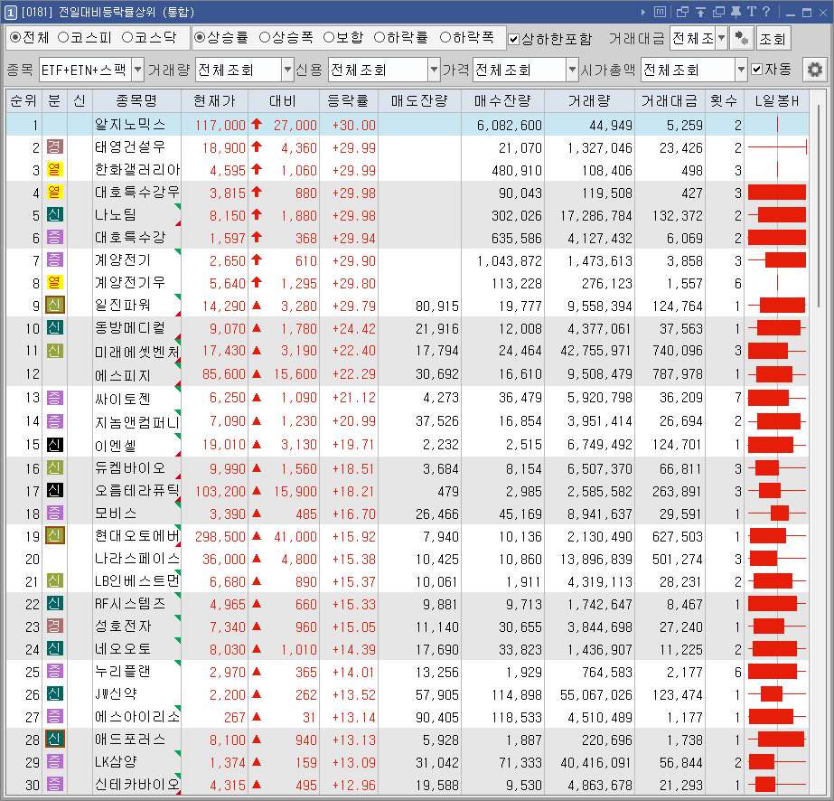 전일대비상승률30위