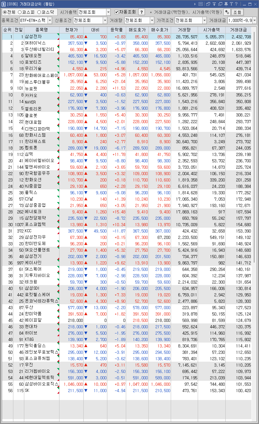 거래대금 1000억 이상 종목