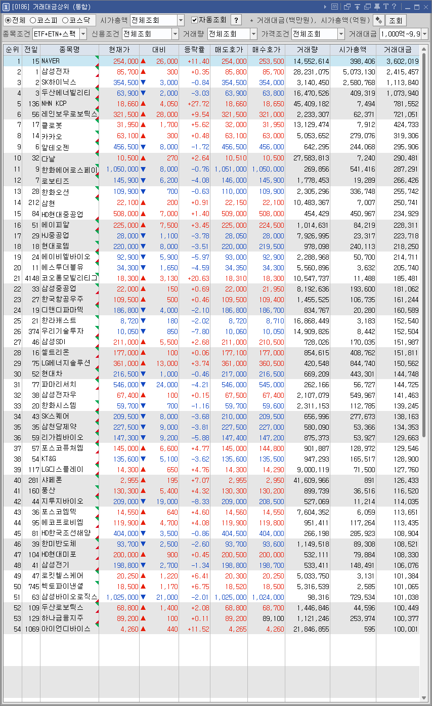 거래대금 1000억 이상 종목