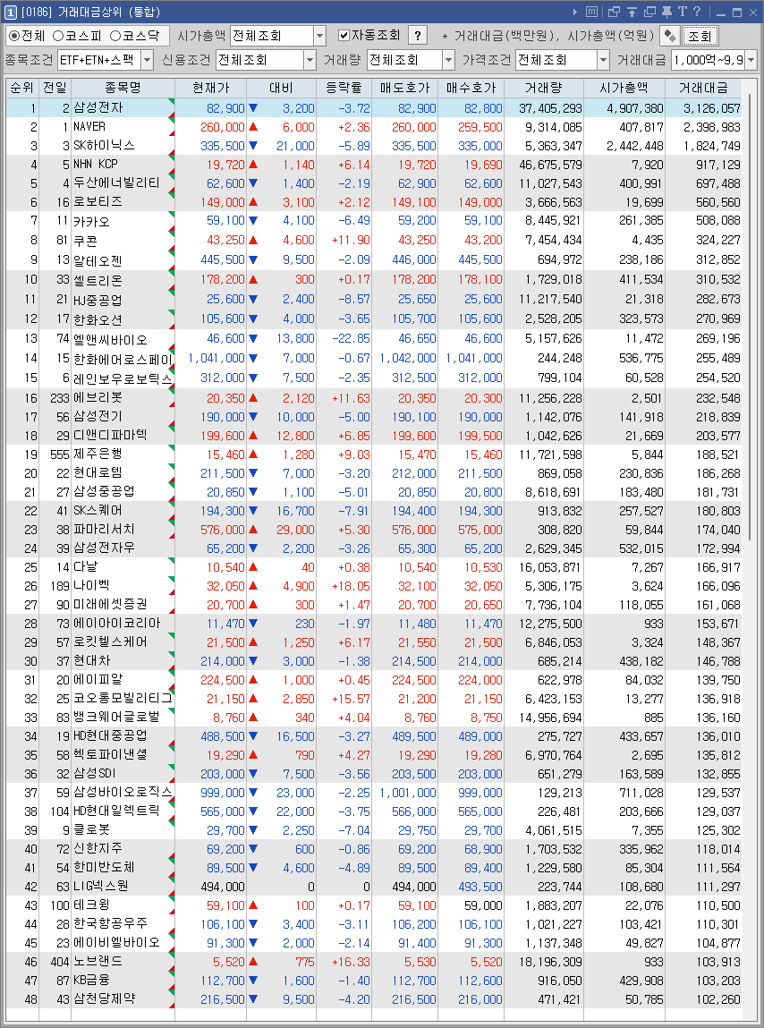 거래대금 1000억 이상 종목