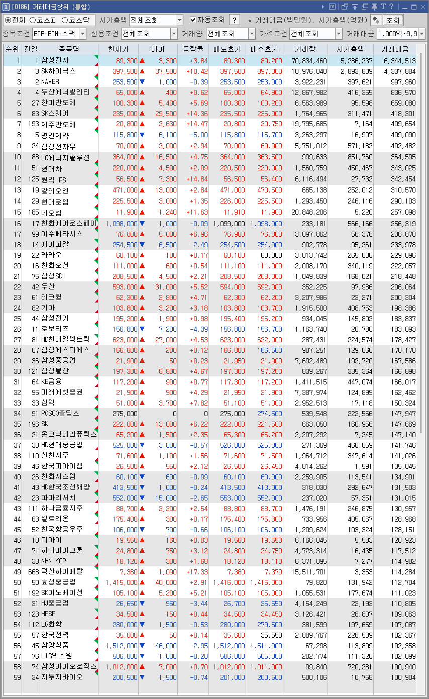 시장종합(코스피 19.4조, 코스닥 7.2조) 코스피 거래대금 터짐